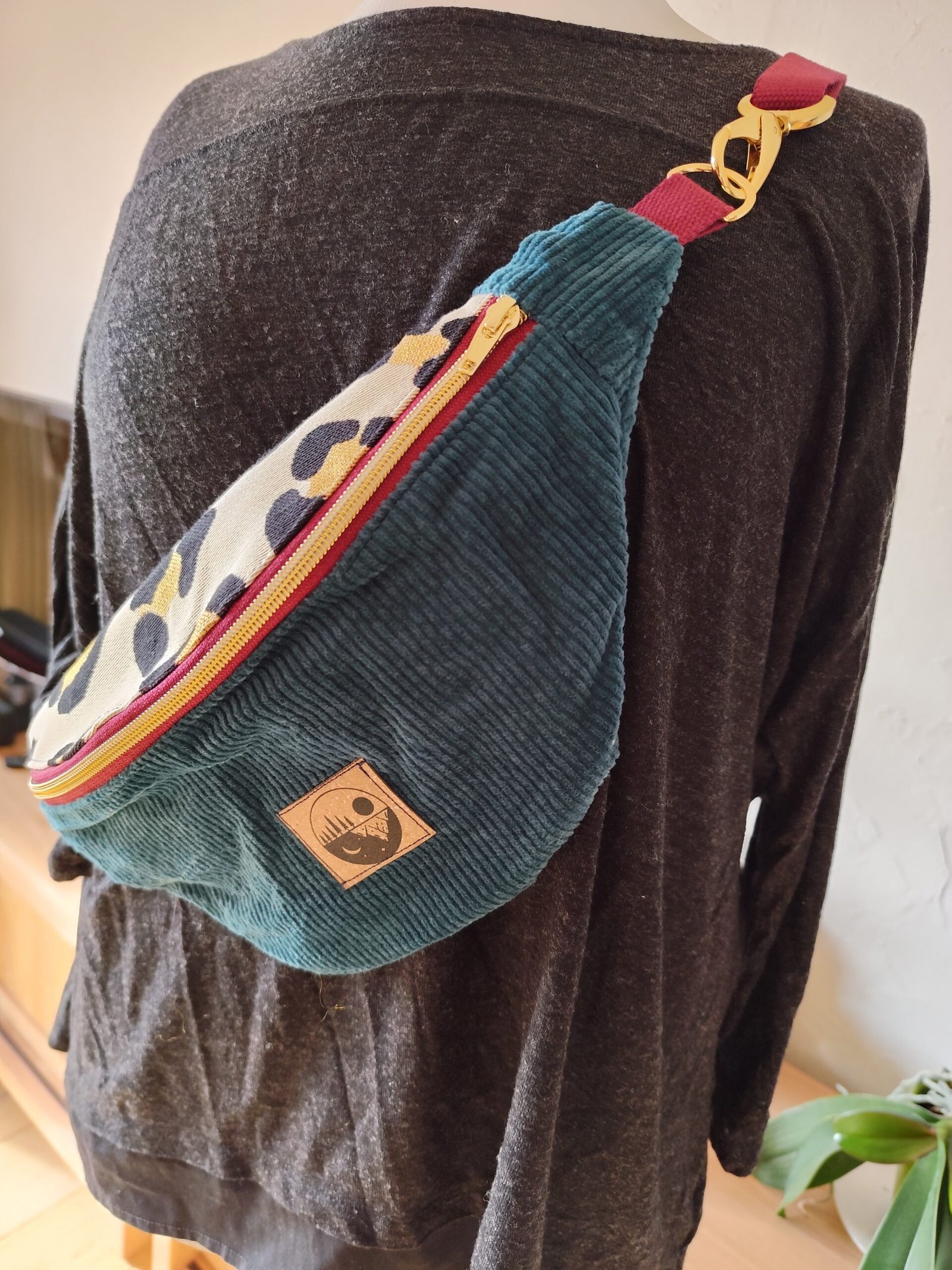 Sac banane velours côtelé ocre tendance et intérieur fleuri