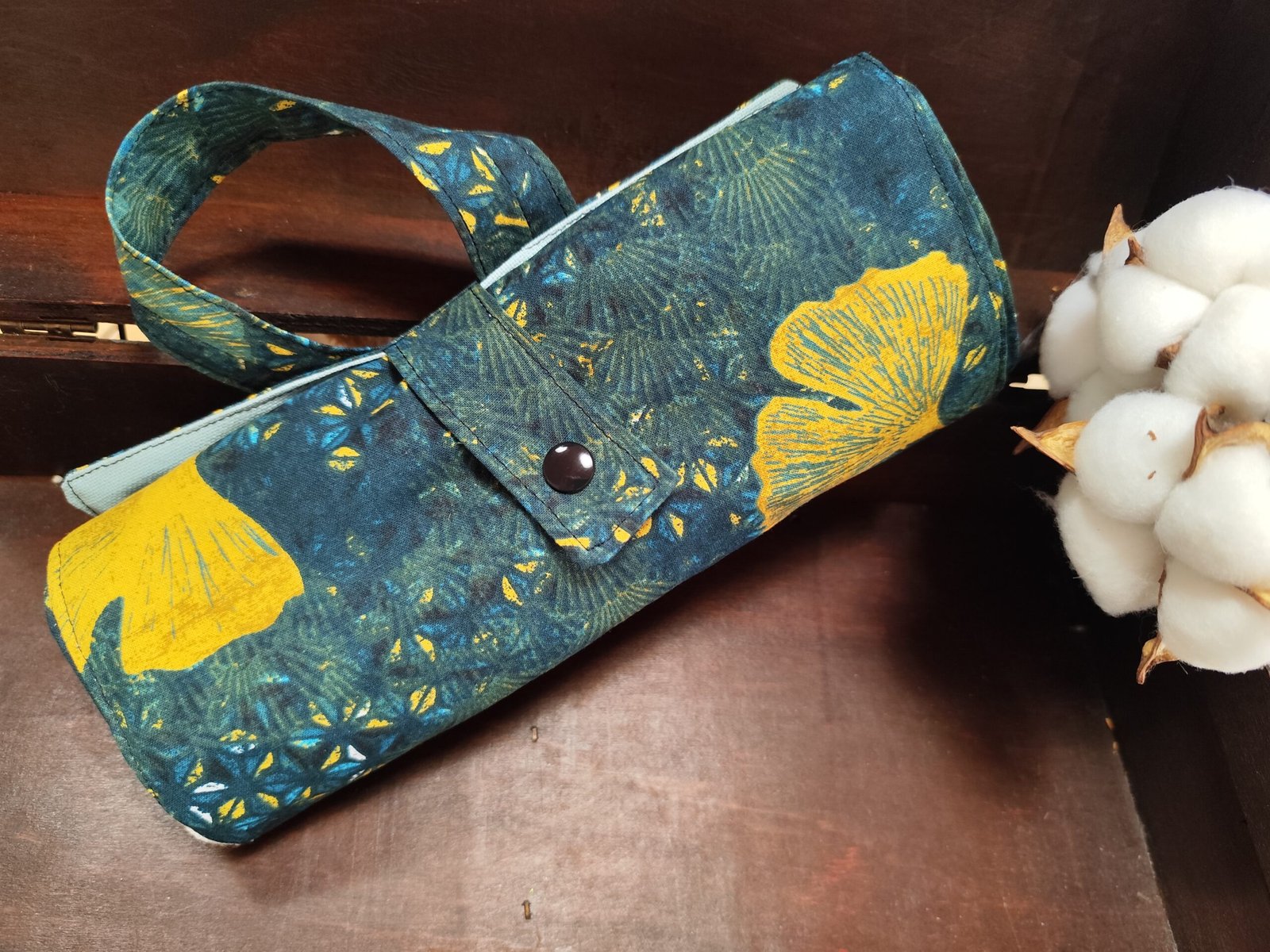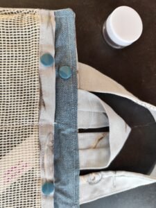 Tissus coton enduit COLORI DENIM Ă  l’intĂ©rieur pour l’Ă©tanchĂ©itĂ© des filets ( HAUTEUR : 10 cm) et y glisser vos savons durs.