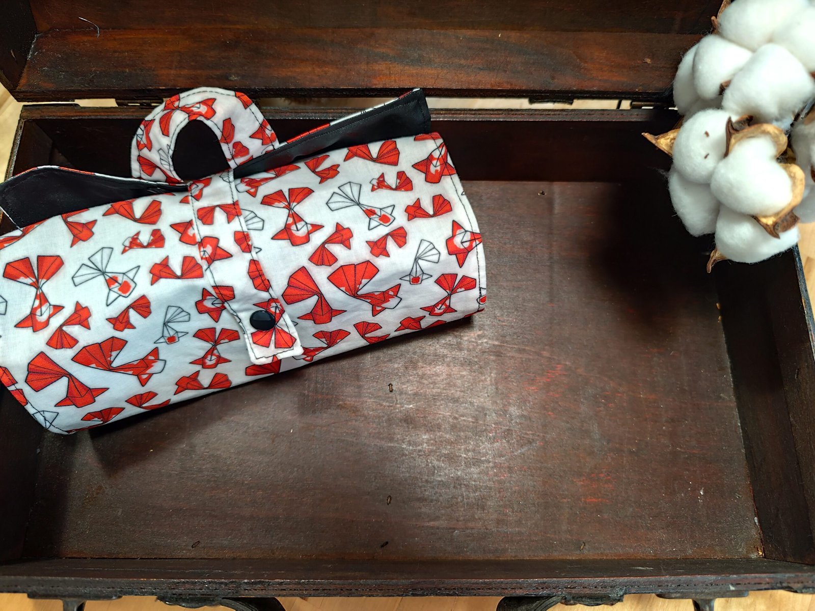 Tissus coton enduit à l’intĂ©rieur pour l’Ă©tanchĂ©itĂ© des filets ( HAUTEUR : 10 cm) et y glisser vos savons durs.